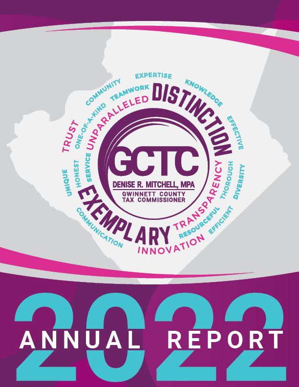Gwinnett County Tax Commissioner Denise R. Mitchell, MPA, is a Constitutional Officer elected to bill, collect and disburse personal and property taxes and to administer homestead exemptions. Serving also as an agent for the state of Georgia, the tax commissioner registers and titles motor vehicles and disburses associated revenue.